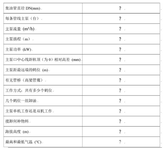 火車槽車卸油是相對復雜的系統(tǒng)工程,電動鶴管潛油泵做為輔助泵,選型過程中需要大量了解參數。具體如下圖: